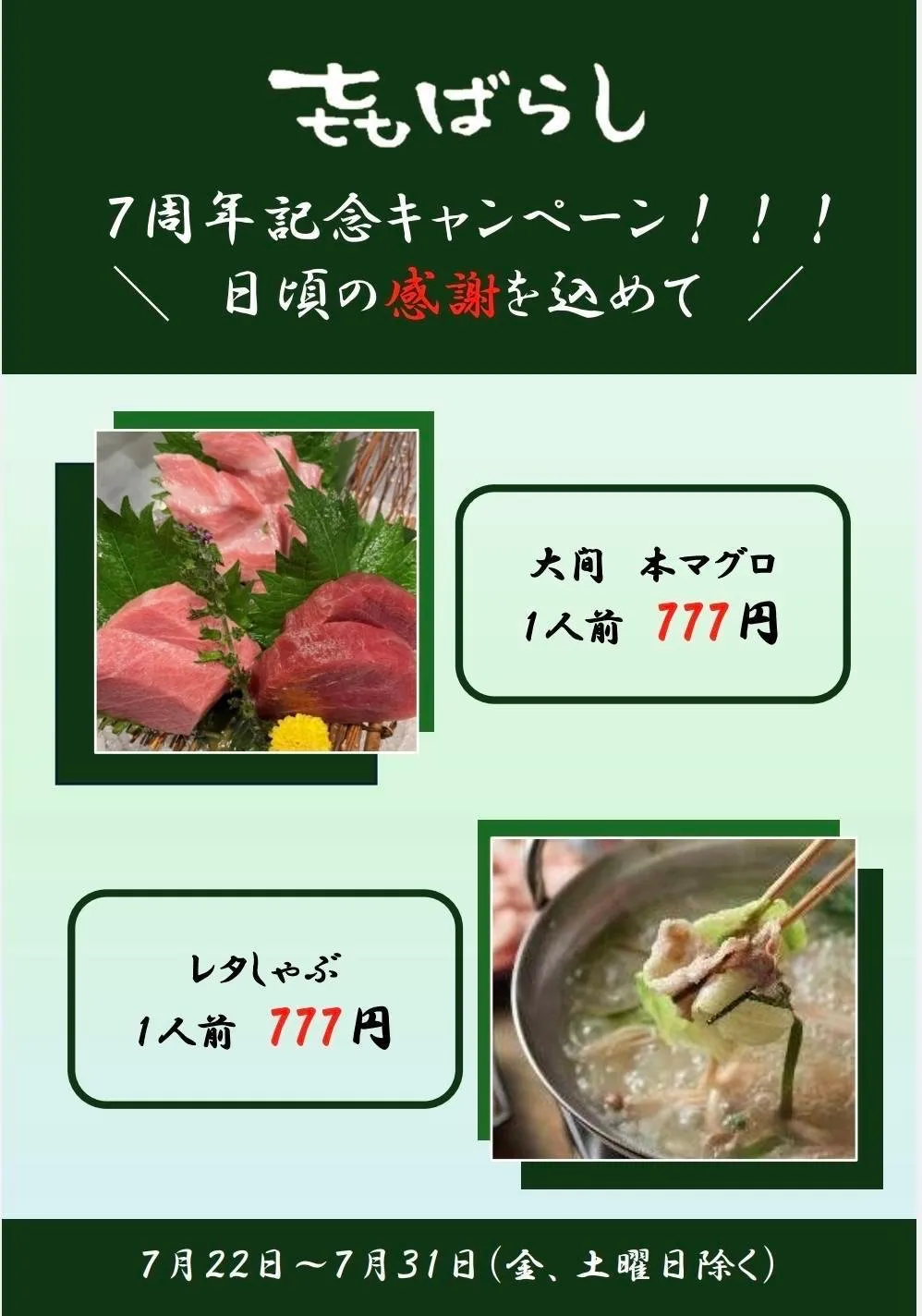 感謝の気持ちを込め22日〜31日(金・土を除く)まで感謝祭をさせていただきます。